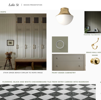 This month's project we're featuring for our #InTheWorks series is our Lake Street project - a new build up in Mar Vista that we started working on last summer. We've been hired to design the entire interior as well as furnish it (dream scope). It has 5 beds, 5 baths, and the following features we've designed into it: floor to ceiling bookshelves in the office, cozy built-in benches under windows in the kids bedrooms, black and white checkerboard tile in the entry / foyer, charming peg rails in the laundry room, a range alcove to die for in the kitchen, and an incredible primary suite situation. Design direction for the project is traditional with a touch of rustic southern charm. Sharing a few screenshots of our designs and CAD elevations below to give you a sense of where we're headed with this one.