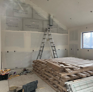 Okay lets recap our day trip to Denver to check in on our #DenverBuild. We took a day trip a few weeks back, flying to see this project in person for the first time ever believe it or not. This is a project we've worked on for over a year and a half (remote) so being able to see it was INCREDIBLE. We've poured ourselves into thoughtfully designing every inch of this home, and to see it coming to life, honestly, made us emotional. The bones of the home - meaning the windows, the doors (all the natural light!), the high ceilings with wood beams, and the floor plan / layout with all paths leading you outside to the beautiful exterior courtyard + pool make it so so special. Sharing some images below of the site visit where we took inventory of everything that we've ordered / delivered to site so far, specified grout for tile throughout, confirmed paint colors for the interior walls / front door, confirmed heights of wall sconces throughout, and talked through remaining to-do's for the next few months while construction wraps up. Still to come: white oak flooring, cabinetry, countertops, lighting and plumbing fixtures, and the remainder of the tile... SO STAY TUNED. The next time we head out (March/April) that will all be done, and we'll be installing insanely beautiful furnishings. It's going to be nothing short of stunning. We can hardly wait.